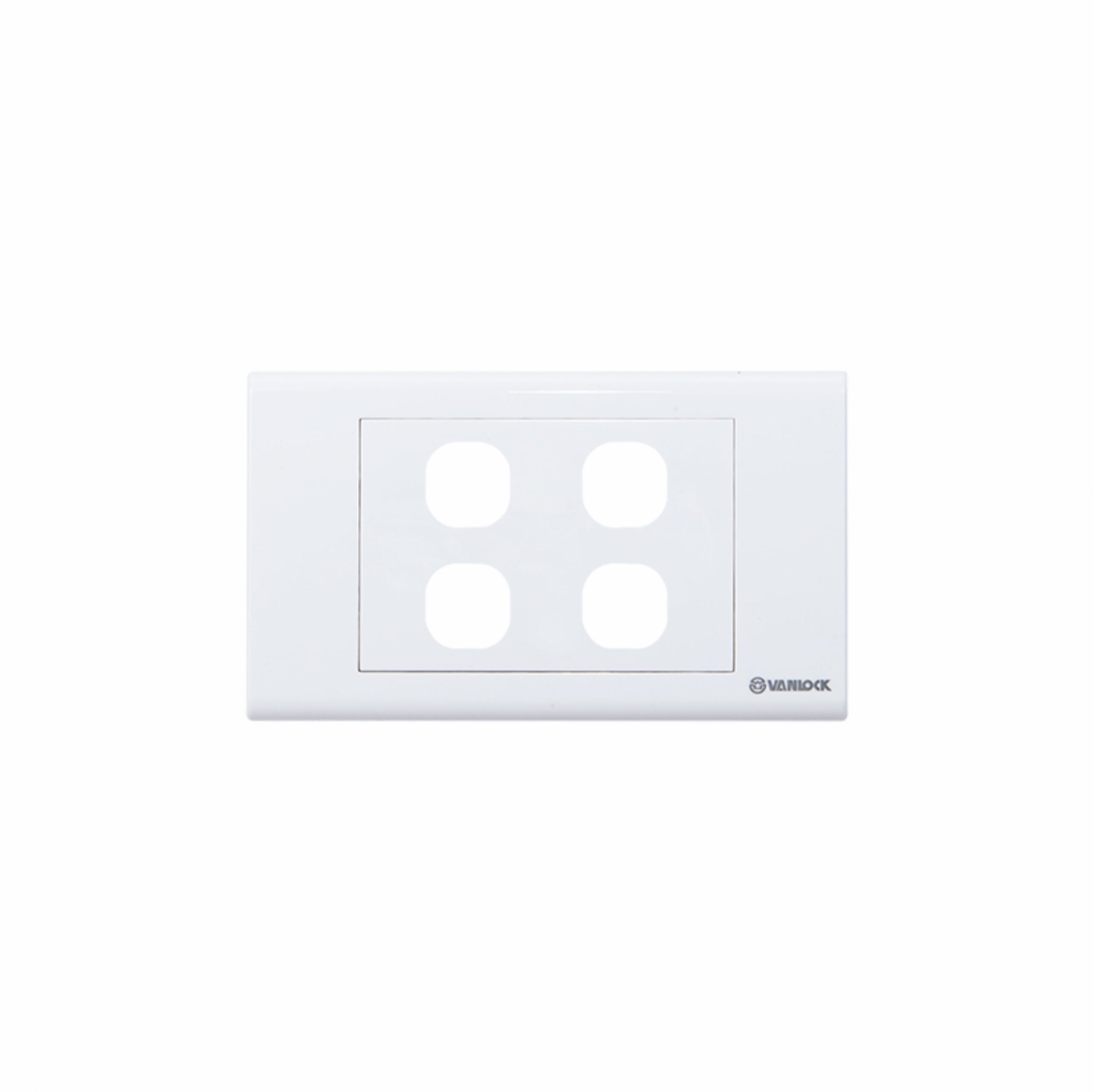 Mặt 4 lỗ – Sino Vanlock – S184/X là mặt đơn 4 lỗ công tắc, được làm bằng nhựa Polycarbonate cao cấp, loại nhỏ thiết kế đơn giản, phẳng, vuông vắn, màu trắng theo tiêu chuẩn châu Âu, khả năng chịu lửa, chống cháy, chống va đập.