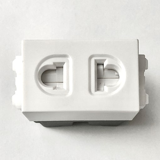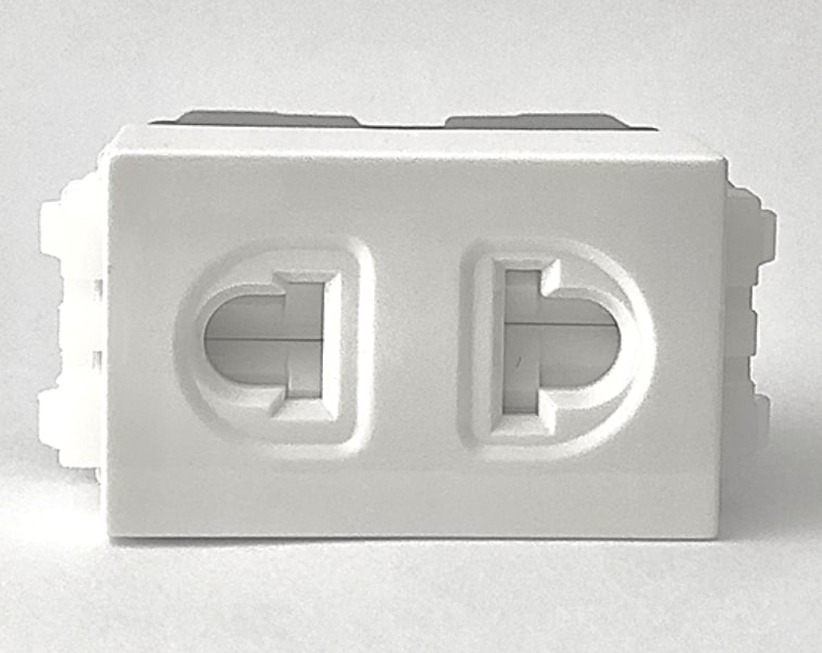 Sản phẩm được làm bằng nhựa Polycarbonate cao cấp, loại nhỏ thiết kế đơn giản, phẳng, vuông vắn, màu trắng theo tiêu chuẩn châu Âu, khả năng chịu lửa, chống cháy, chống va đập và bản trượt phủ lớp hợp chất Oxit Cadimi – Bạc (AgCdO12) đảm bảo theo tiêu chuẩn 20.000 lần rút cắm