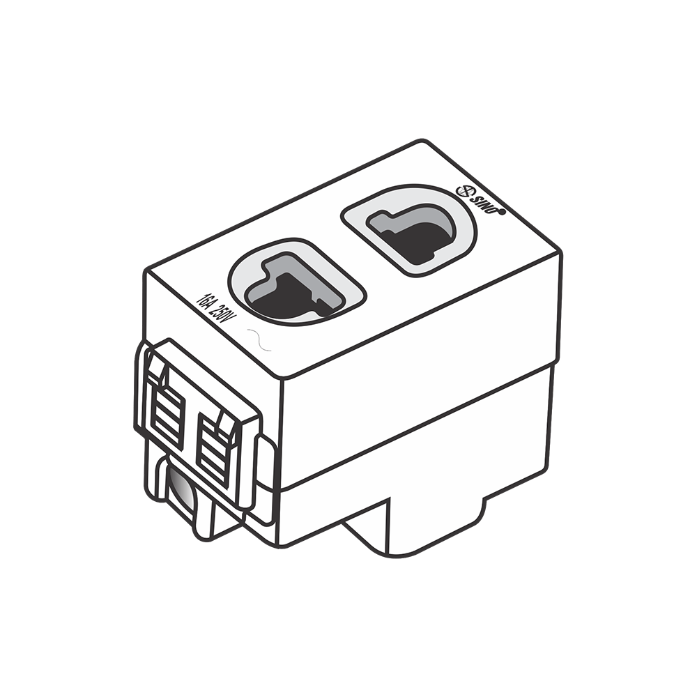 Ổ Cắm Đơn 2 Chấu S18CCU SINO là hạt ổ cắm 2 chấu có màn che được dùng cho hệ S18CC, S98CC, S18CCS.